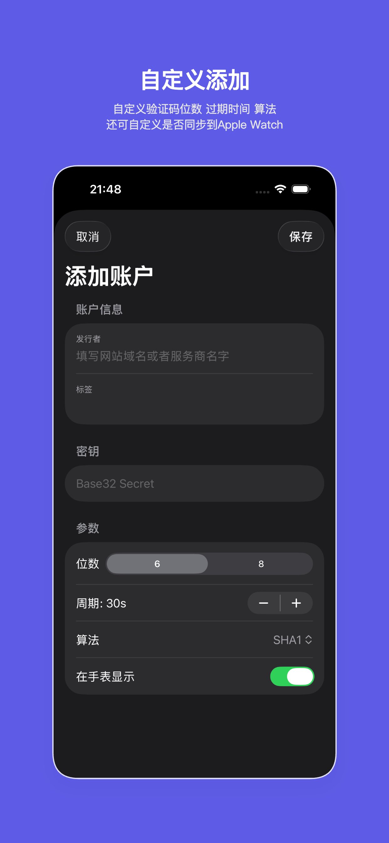 - Quickly add and manage 2FA accounts快速添加与管理 2FA 账号